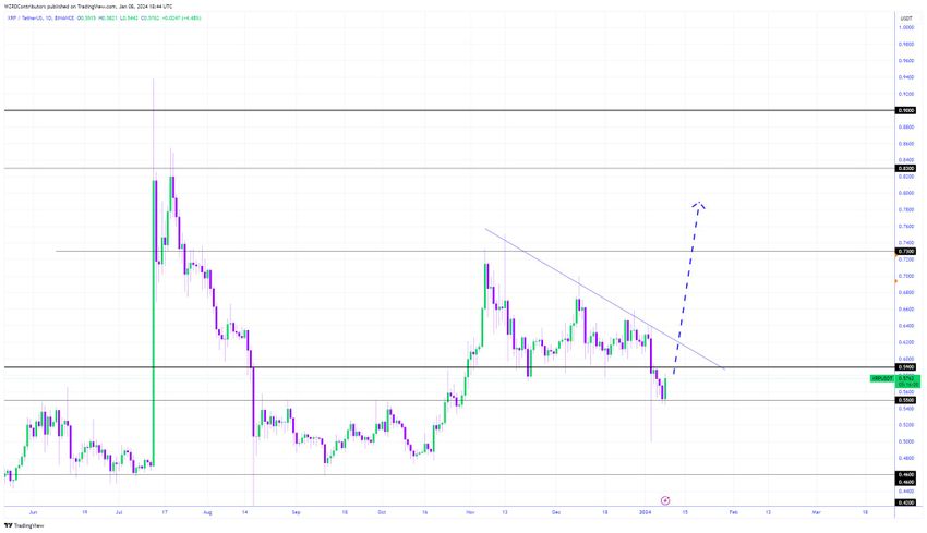 암호화폐 분석가들과 트레이더들은 리플 가격이 상승 추세를 시작할 것으로 보고 있습니다. 크립토WZRD는 하강 저항 추세선을 돌파하면 가격이 0.75달러까지 상승할 것이라고 전망했습니다.