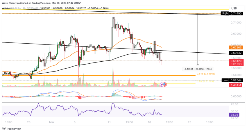 황금 비율 수준에서 명확한 거부에 직면한 XRP 가격