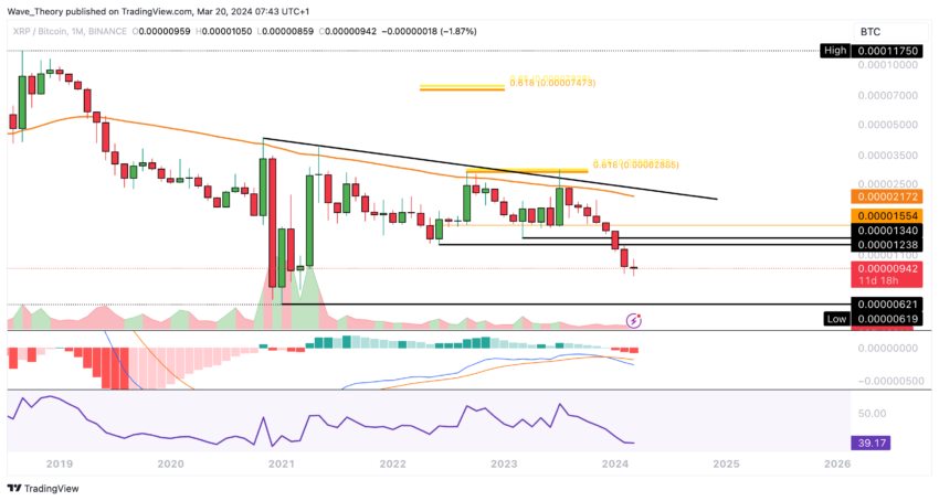 비트코인 대비 하락하는 XRP 가격