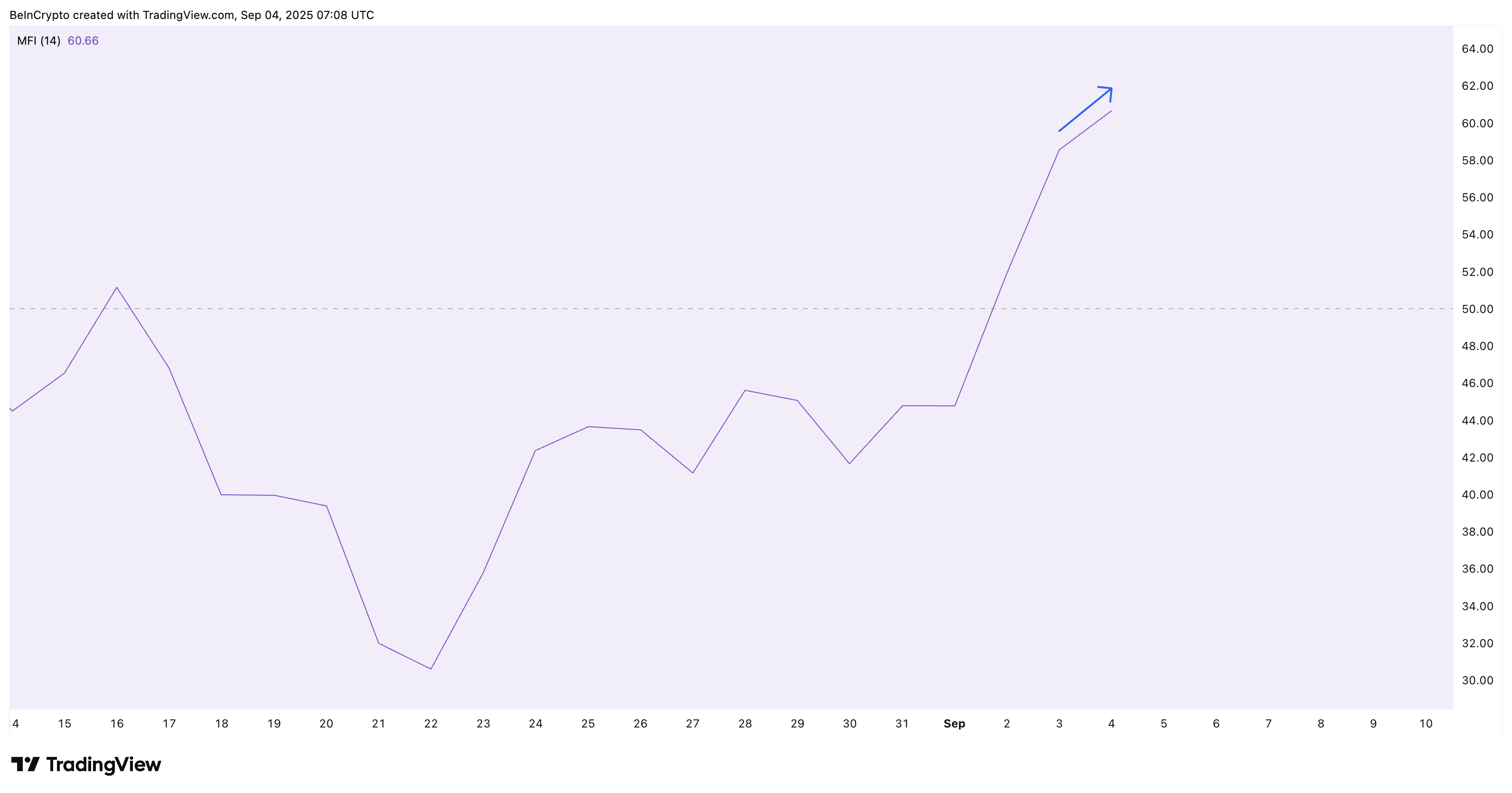 거래량을 기반으로 매수 및 매도 강도를 측정하는 자금 흐름 지수(MFI)는 상승세를 보였습니다. 이는 보통 매수자가 하락 시 매집하고 있음을 나타냅니다. 그러나 자본 유입 대 유출을 추적하는 차이킨 머니 플로우(CMF)는 하락했습니다.