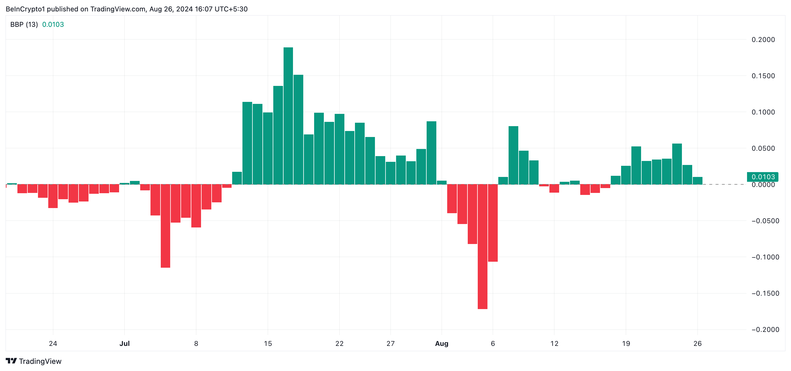 이 강세 편향은 현재 0.010인 XRP의 긍정적인 엘더-레이 지수에 의해 강화됩니다. 특히, 이 지표는 8월 18일부터, 횡보 추세가 시작된 후 9일 동안 긍정적 영역에 머물렀습니다.