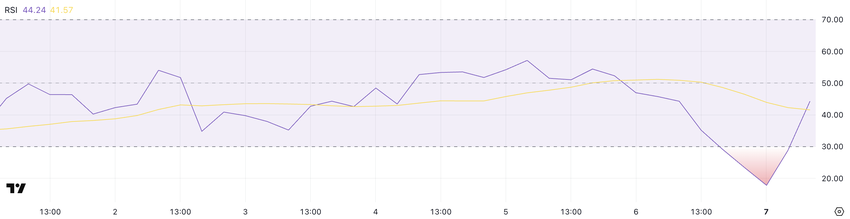 하루 전만 해도 RSI는 46.97에 있었으며, 이는 최근 시장 매도세 동안 XRP가 경험한 급격한 변동성을 반영합니다. RSI는 모멘텀 지표로, 0에서 100까지 범위에서 자산이 과매수(70 이상) 또는 과매도(30 이하) 상태인지 식별하는 데 사용됩니다.