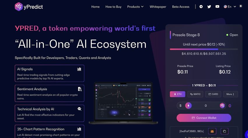 최근 AI 기반 예측 분석 플랫폼 한 곳이 가상화폐 구루의 관심을 사로잡았다. y프리딕트(yPredict)는 인공지능 기반 코인 투자 플랫폼으로 사전 판매 마지막 단계인 8단계를 진행하고 있다.