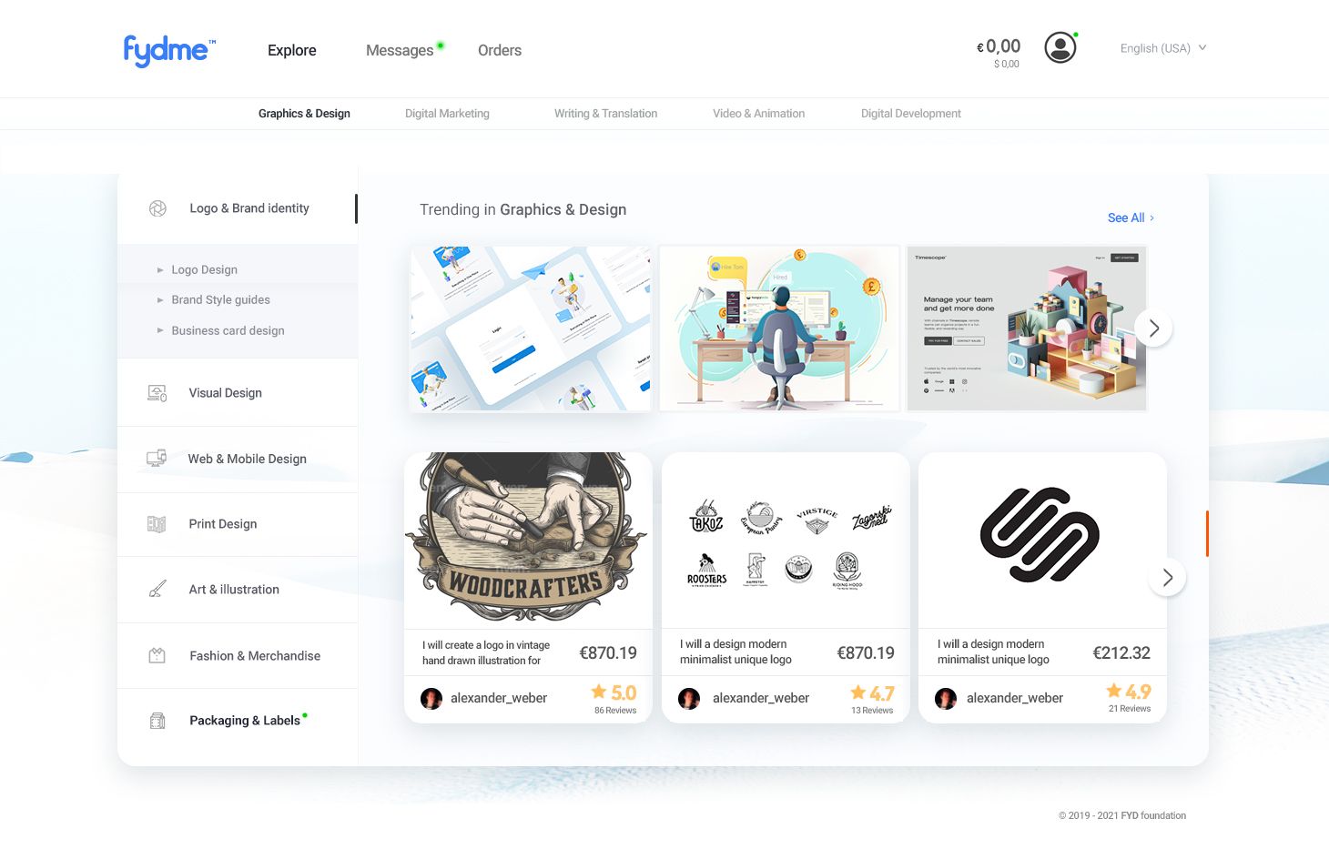 일반적인 온라인 프리랜서 시장과 동일하게 FYD 역시 웹 디자이너, 회계사, 컨설턴트, 프로그래머, 애니메이터, 작가, 온라인 콘텐츠 제작자 등 각계각층의 프리랜서들을 모집한다.